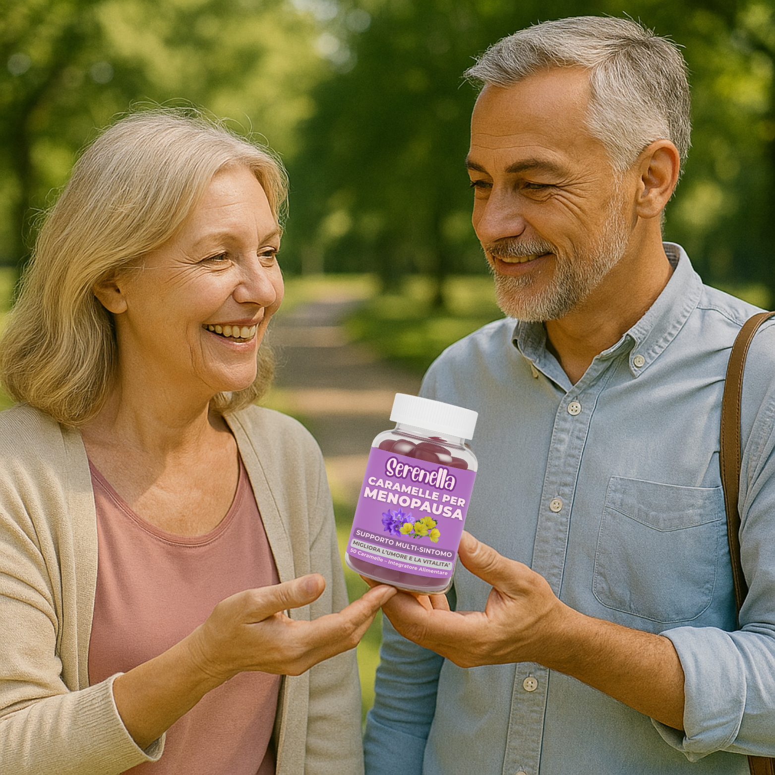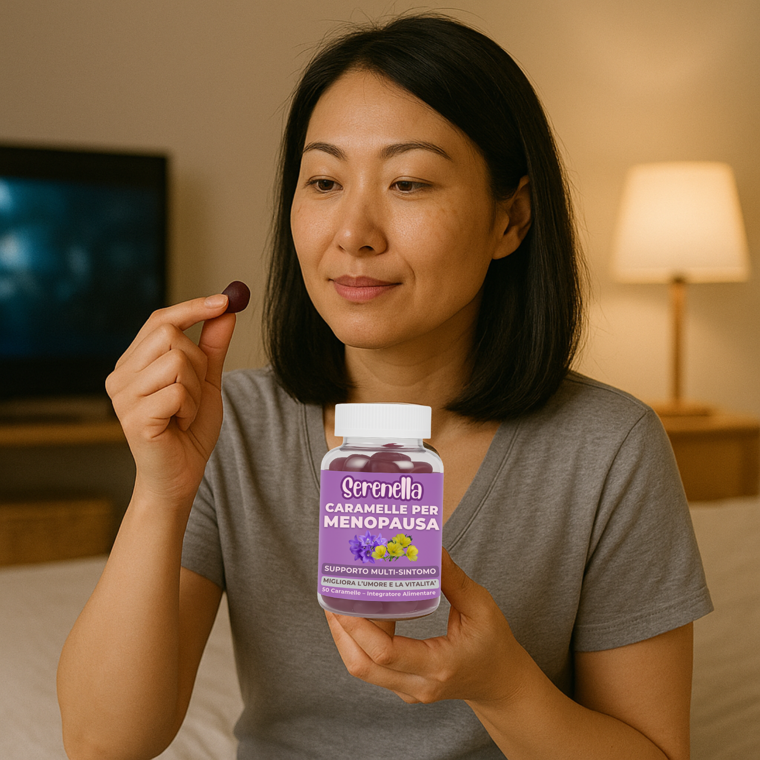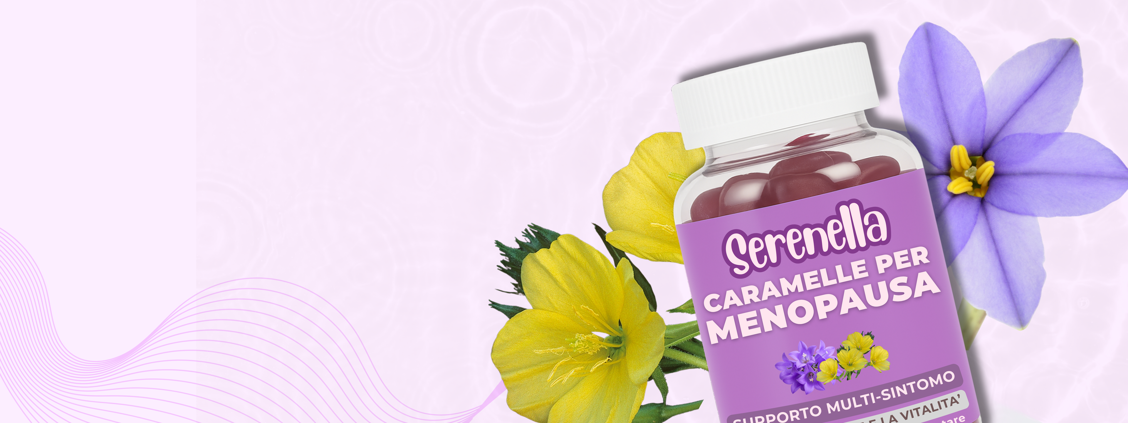 Serenella Gummies™ è un integratore naturale in forma di caramelle pensato per supportare il benessere femminile durante la menopausa.