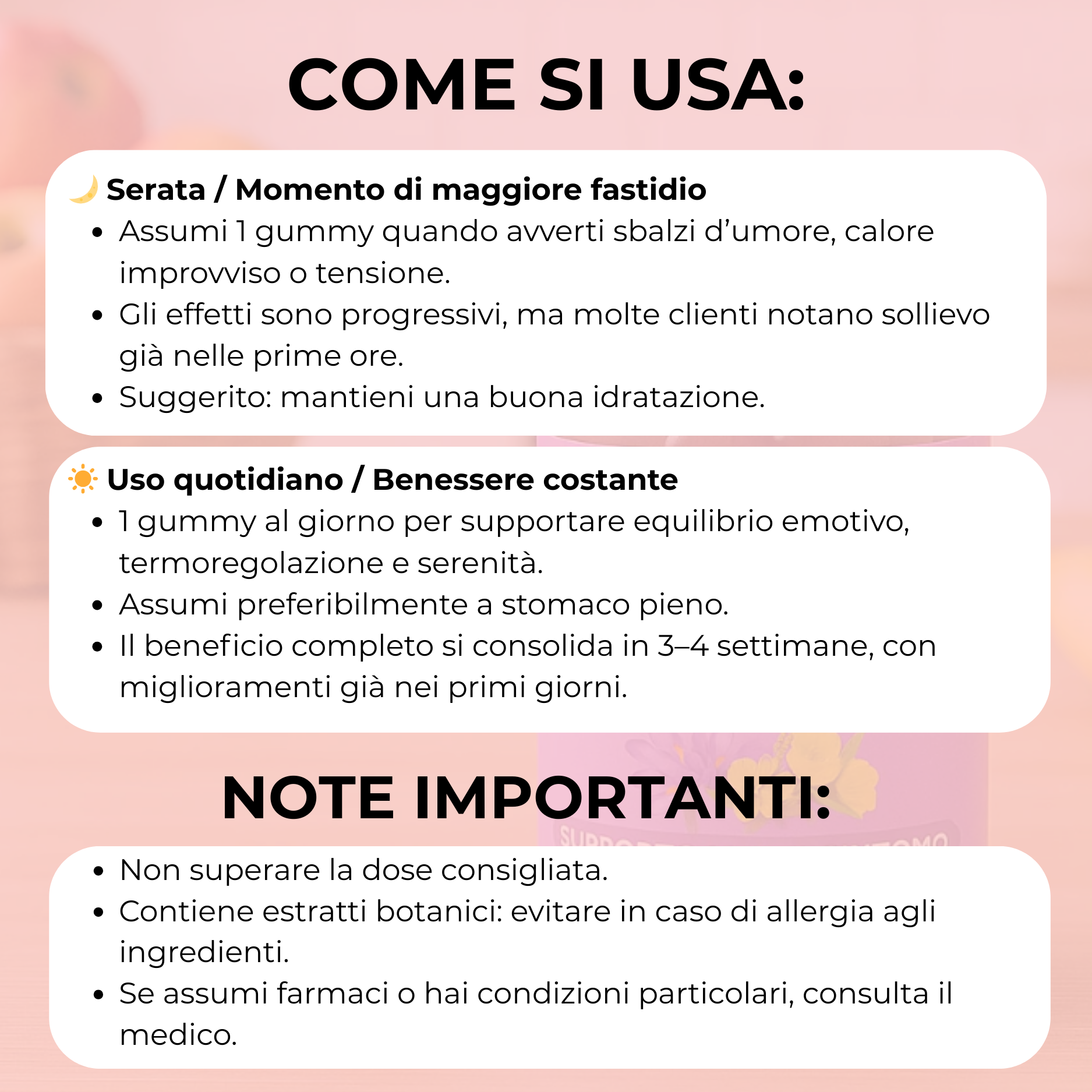Gli attivi naturali presenti in Serenella Gummies™ lavorano in sinergia per sostenere equilibrio ormonale, termoregolazione e benessere emotivo.