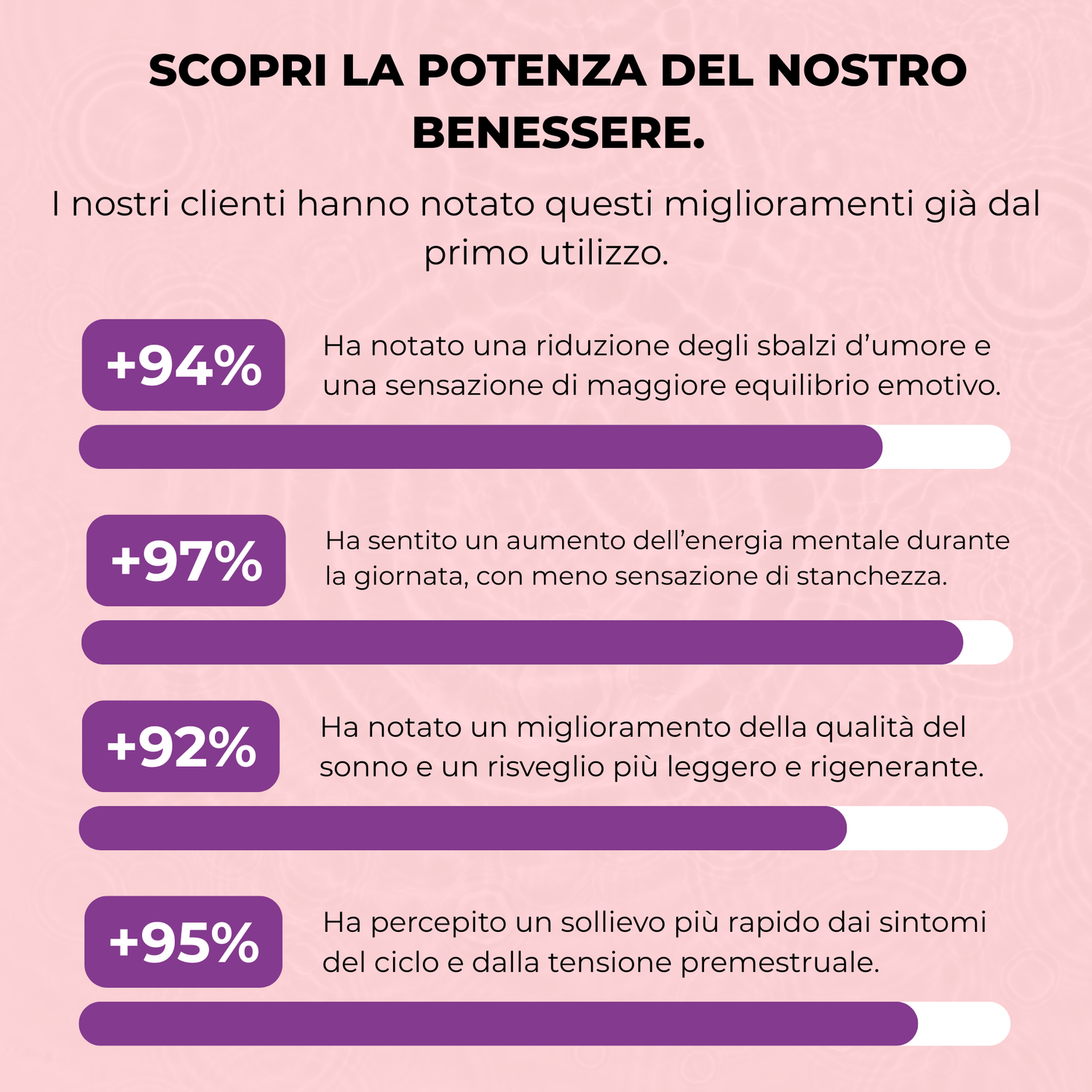Il risultato? Una sensazione di maggiore equilibrio, vampate e sudorazioni meno invasive, umore più stabile e energia più costante, per vivere la menopausa con più serenità, giorno dopo giorno.